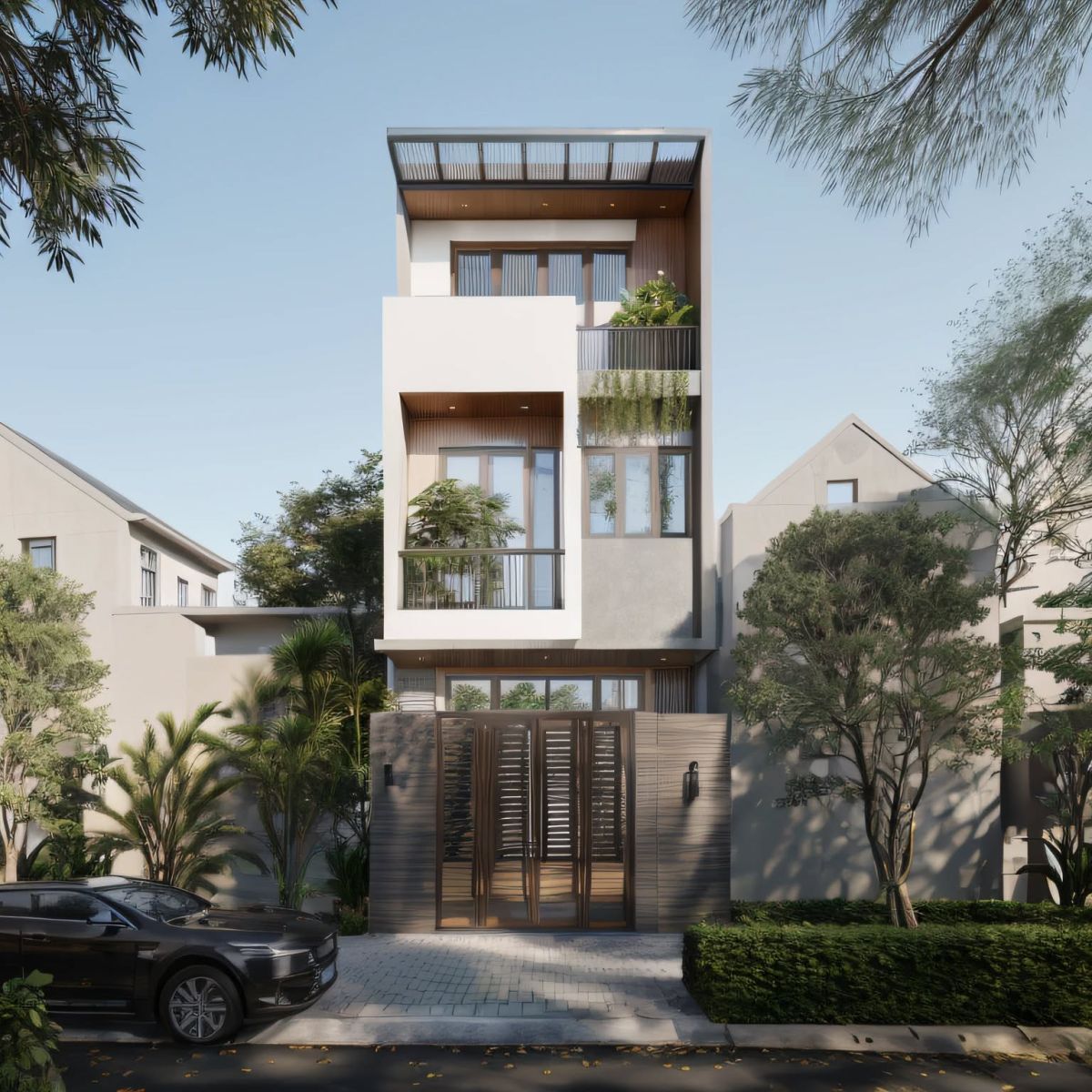 Dự án nhà phố hiện đại – phối cảnh và ảnh thực tế.